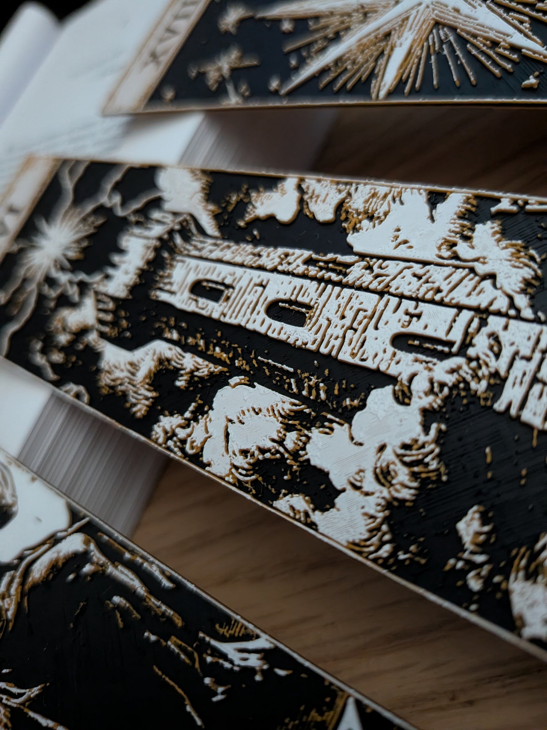 Zwei detailreich gestaltete Lesezeichen mit den klassischen Tarot-Motiven Der Teufel, Der Turm und Der Stern.Jedes Stück zeigt die traditionellen römischen Zahlen XV, XVI und XVII samt den charakteristischen Symbolen der Großen Arkana.